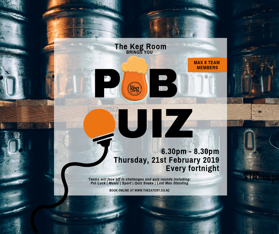 Round up some friends, maximum team size of 8 people, no cost to enter and get a seat at Rototuna's newest brain tingling night out.